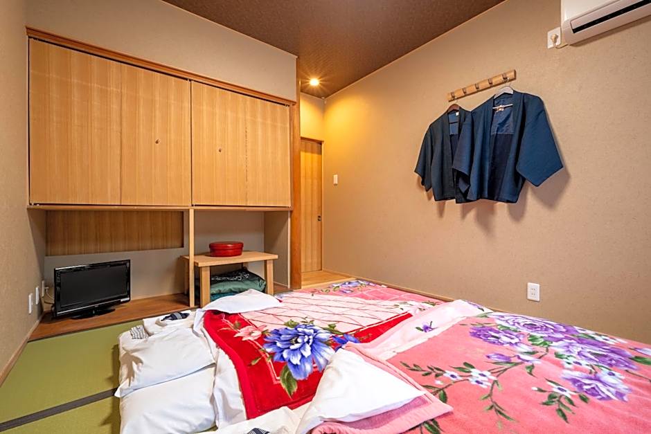 This quadruple room is air-conditioned and features a shared bathroom, tatami floors and a safe deposit box. The unit offers 4 futons.